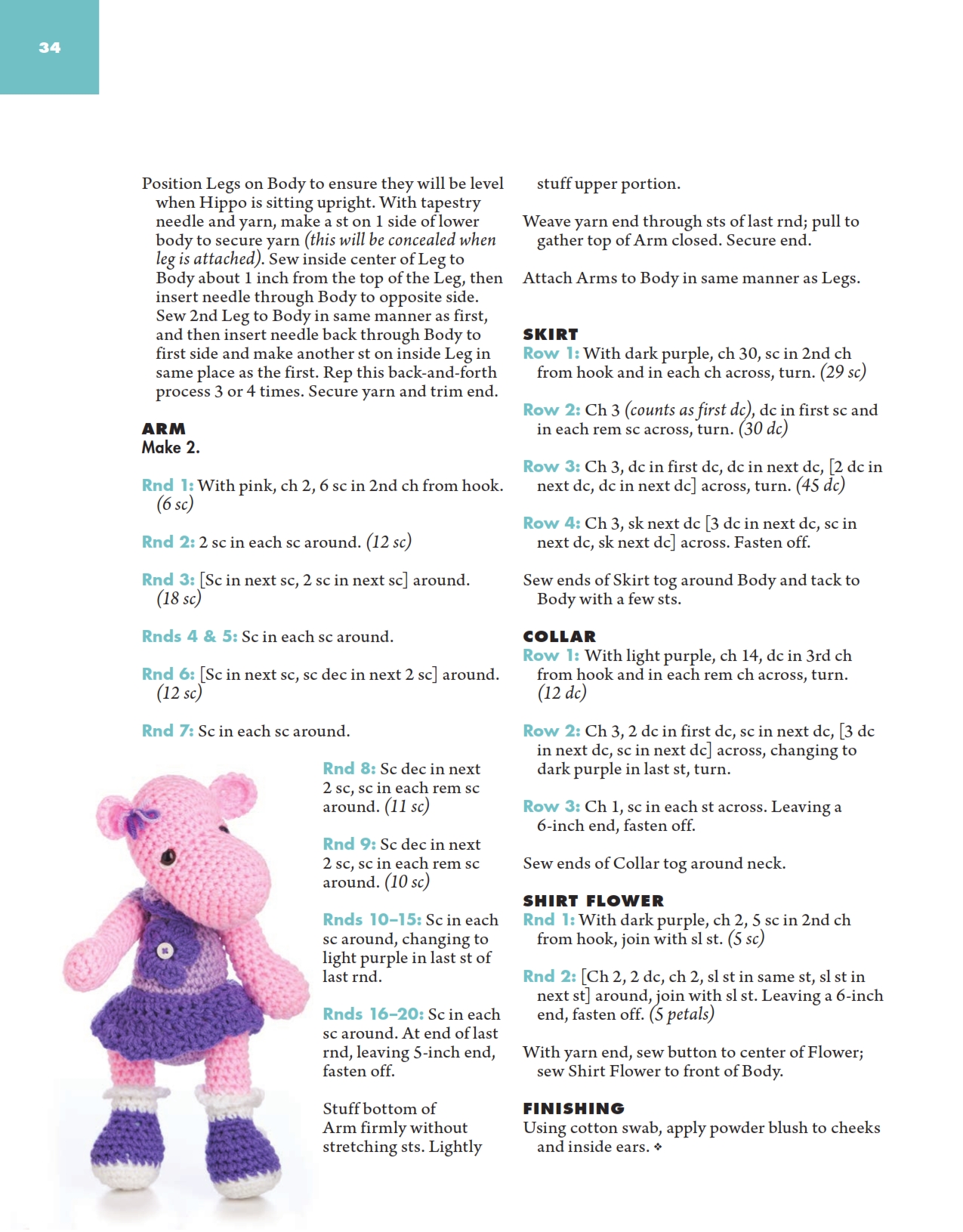 Pink hippo with dress amigurumi pattern (4)