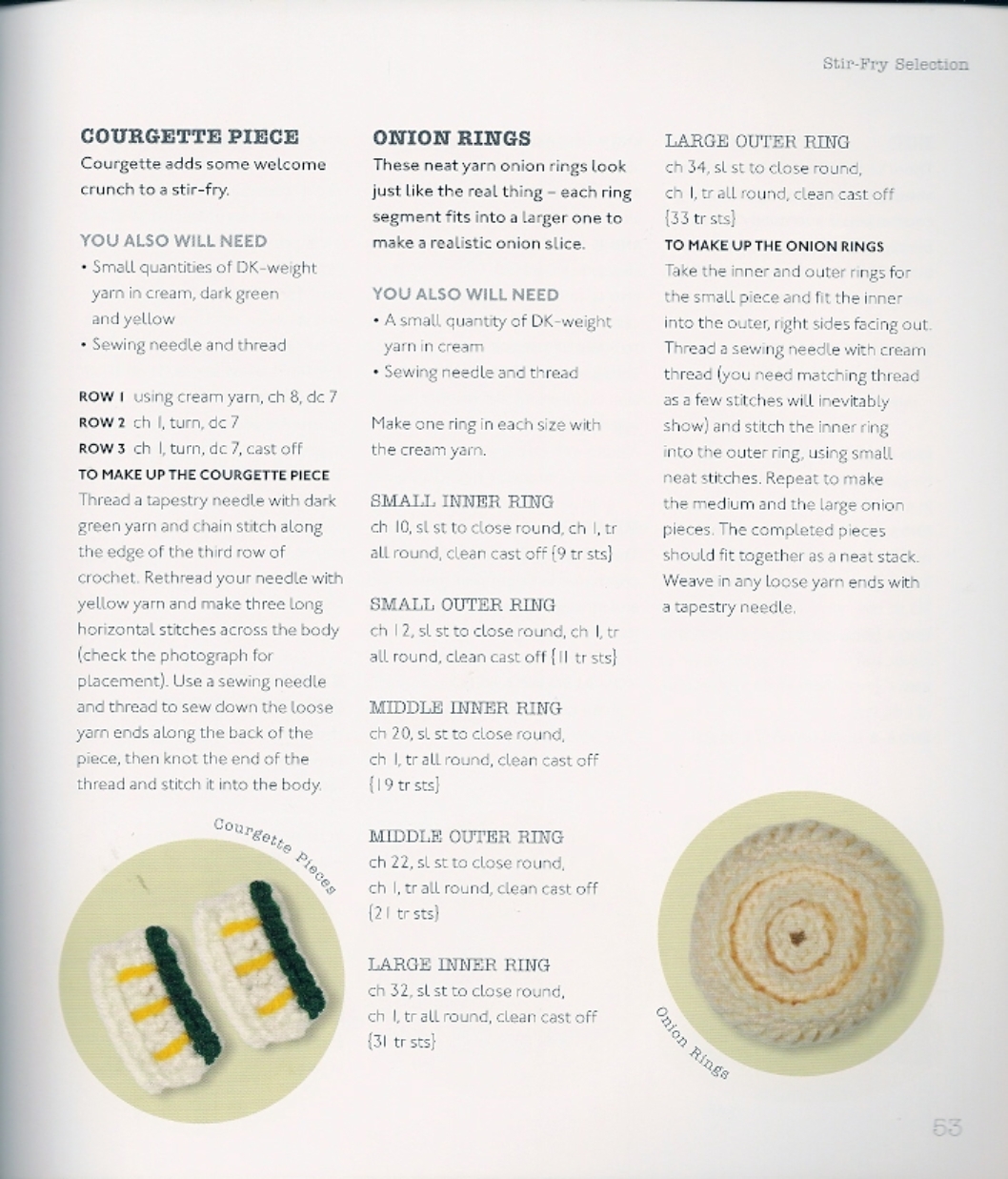 Courgettes and onion ring amigurumi pattern