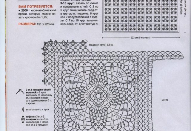 Crochet bedspread big squares and flowers (1)