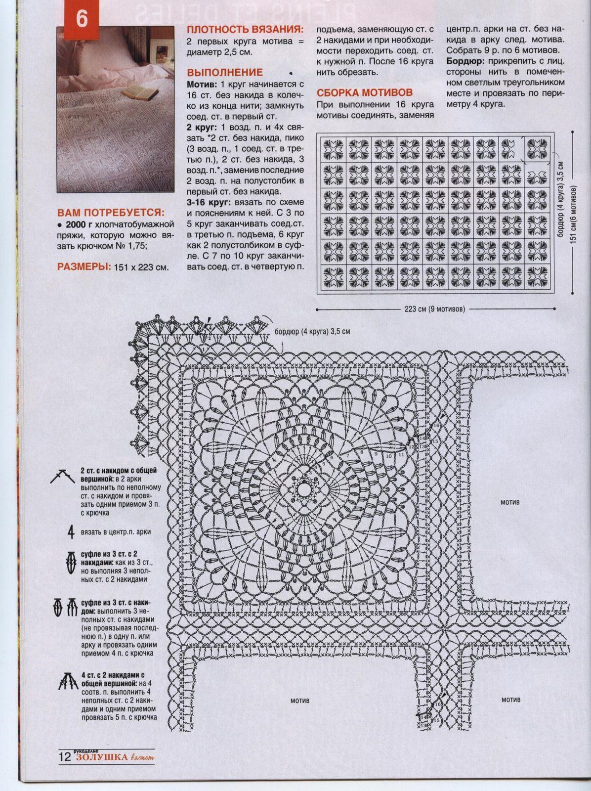 Crochet bedspread big squares and flowers (1)