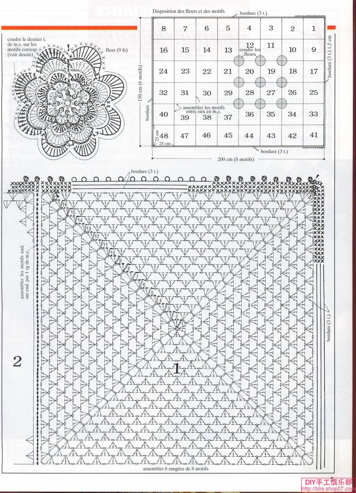 Crochet bedspread big squares and flowers (2)