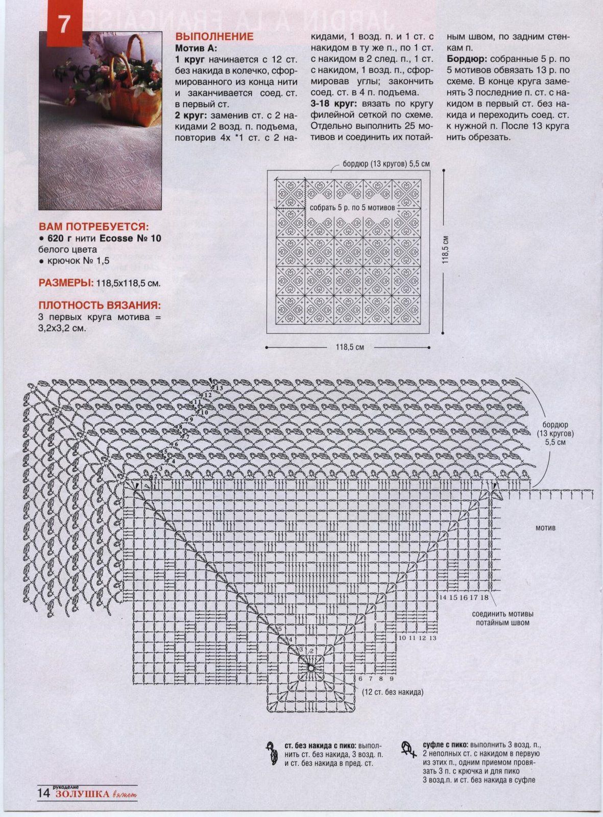 Crochet bedspread squared modules with small hearts (2)