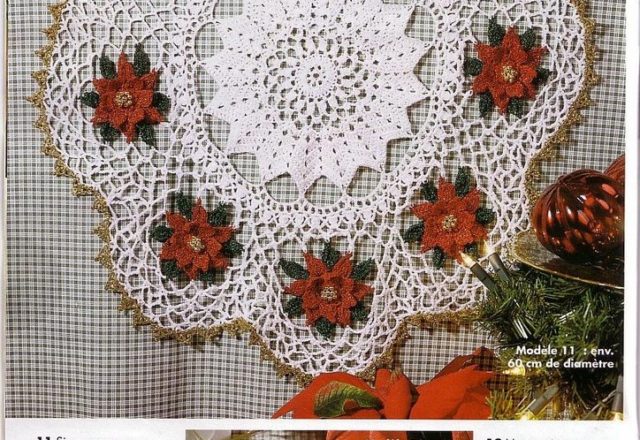 Christmas round crochet doily with flowers (1)