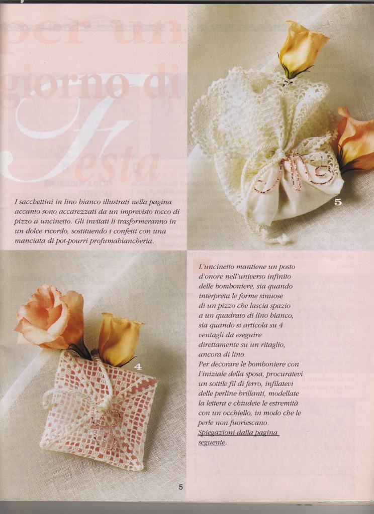 Crochet favor sachet with wedding rings intertwined (2)