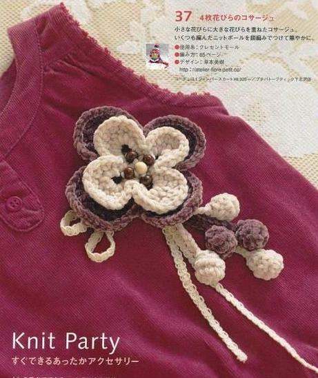 crochet flower and berries brooch (1)