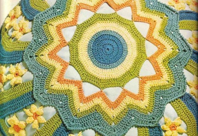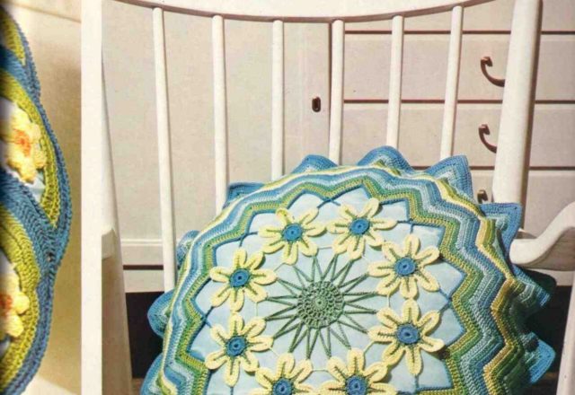 cuscino uncinetto rotondo fiorellini gialli (2)