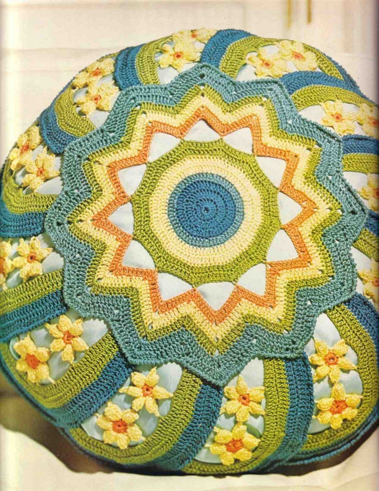 cushion crochet round yellow flowers