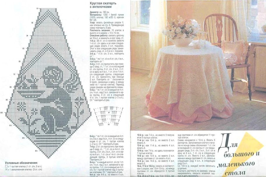 Crochet filet pattern tablecloth with slices