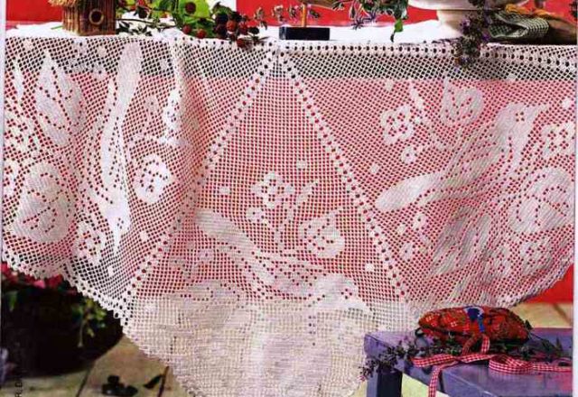 Round crochet filet design table cloth with sparrows birds (2) Pattern added on April 26, 2022 by Amy