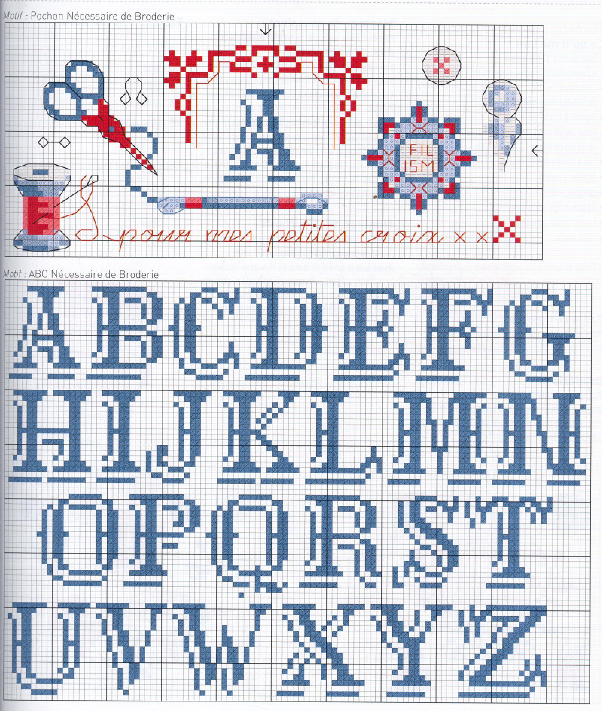 Ancient vintage cross stitch alphabet with blue letters (3)