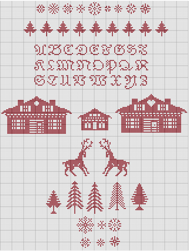 Cross stitch alphabet very nice Christmas with red houses and reindeer Pattern added on April 24, 2022 by Amy