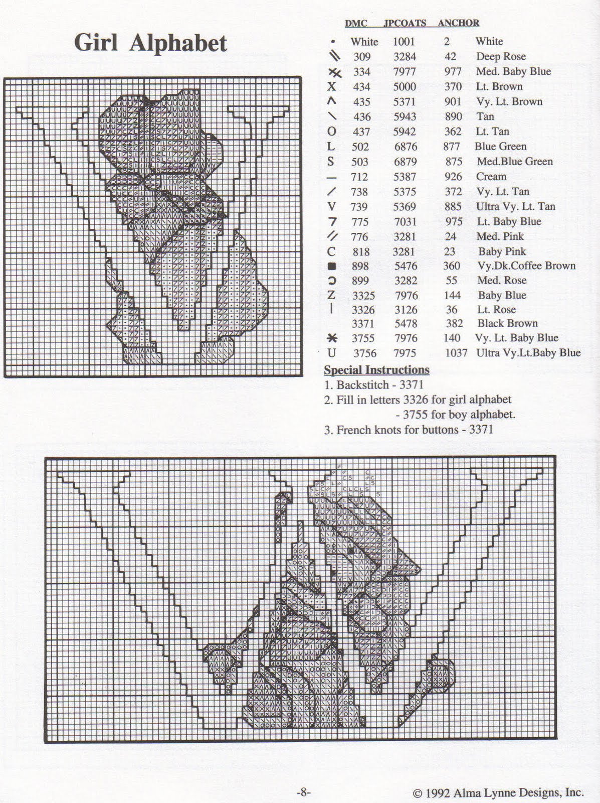 Cross stitch alphabet with sweet teddy bears (11)