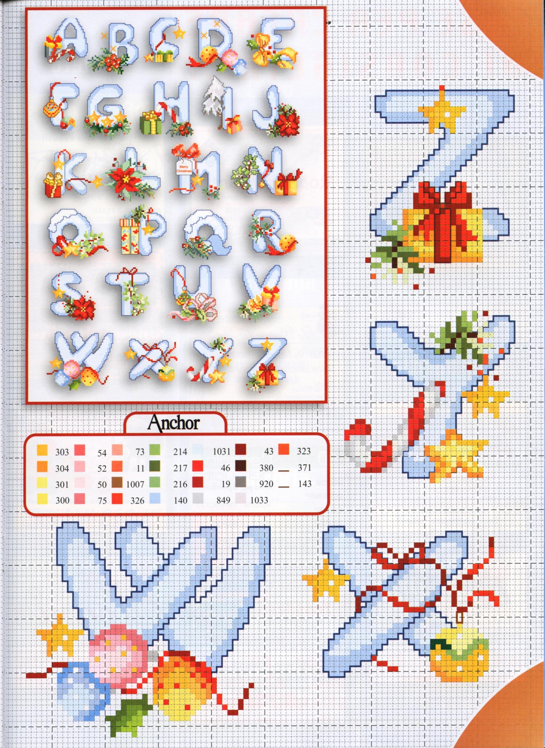 Cross stitch Christmas alphabet with Santa Claus snowmen and goblins (1)