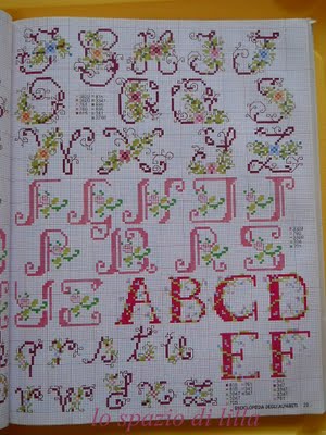 Cross stitch floral alphabet with uppercase light blue letters (1)