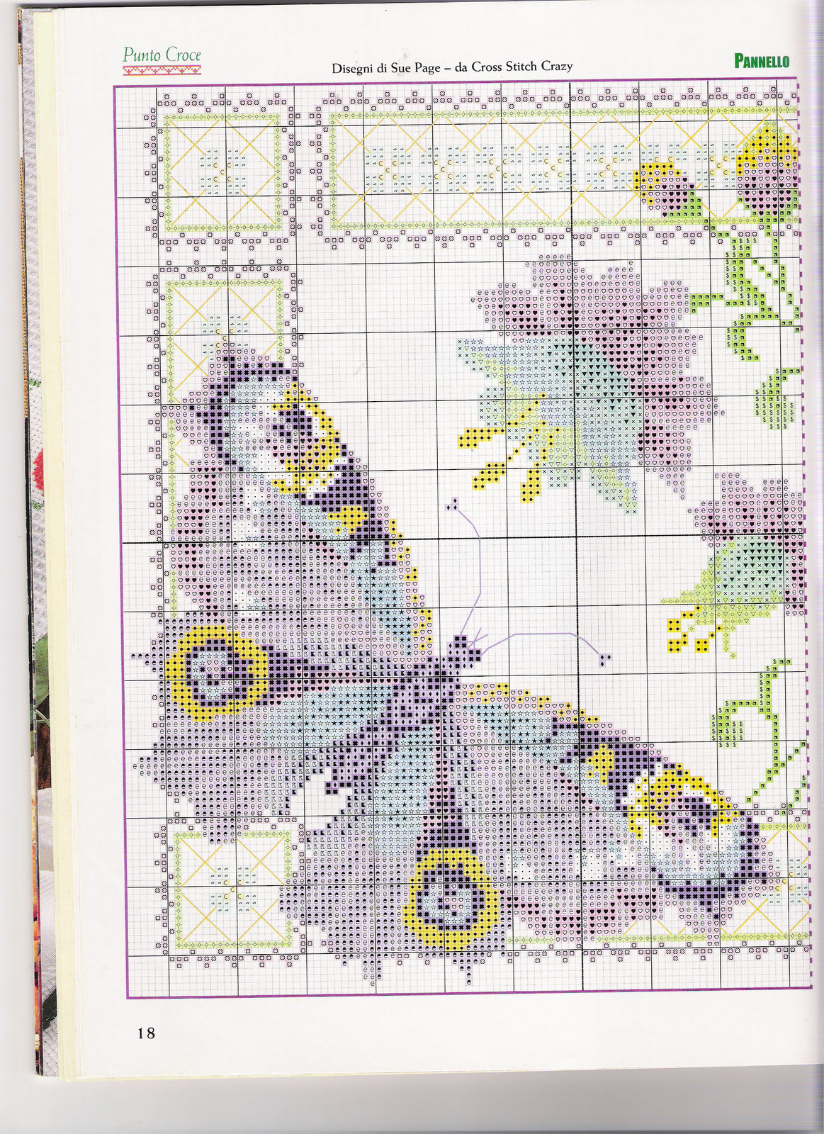 Butterfly on sunflower cross stitch pattern with back stitch