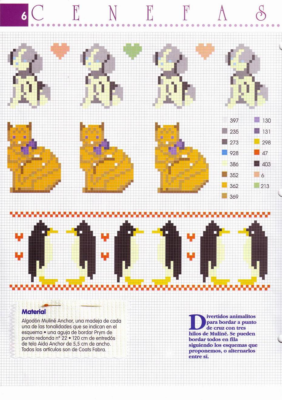 Cross stitch border dogs cats and penguins