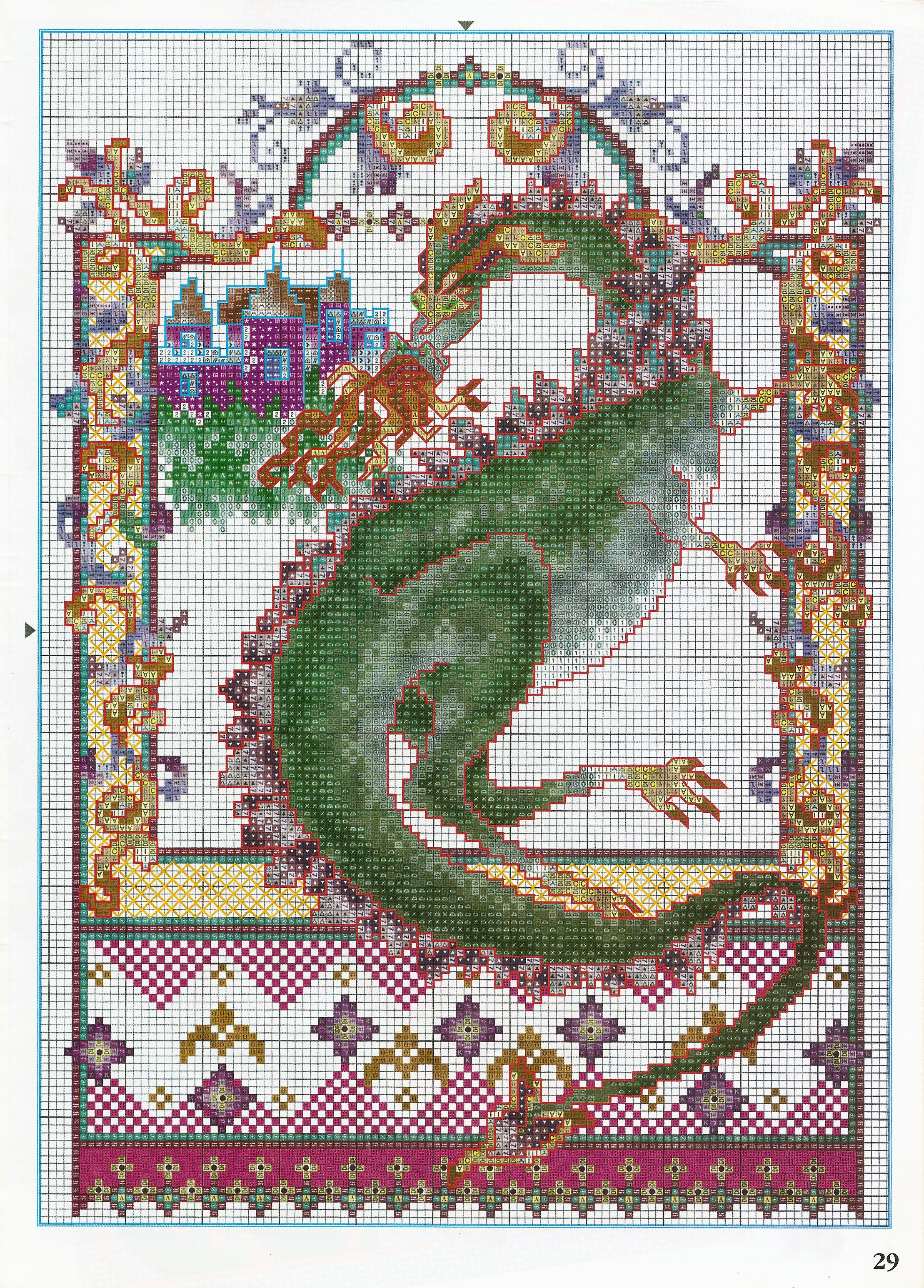 Green fire-breathing dragon cross stitch pattern (2)