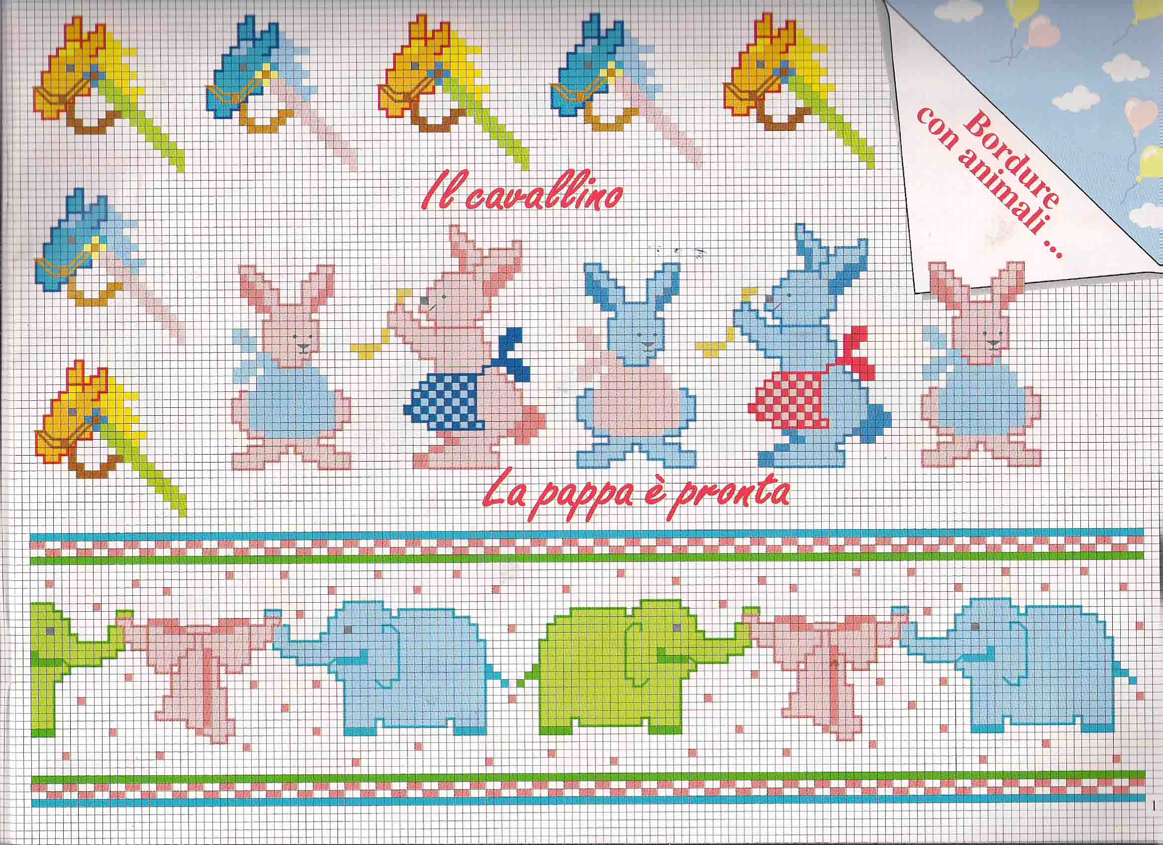 Baby cross stitch borders with horses elephants and rabbits