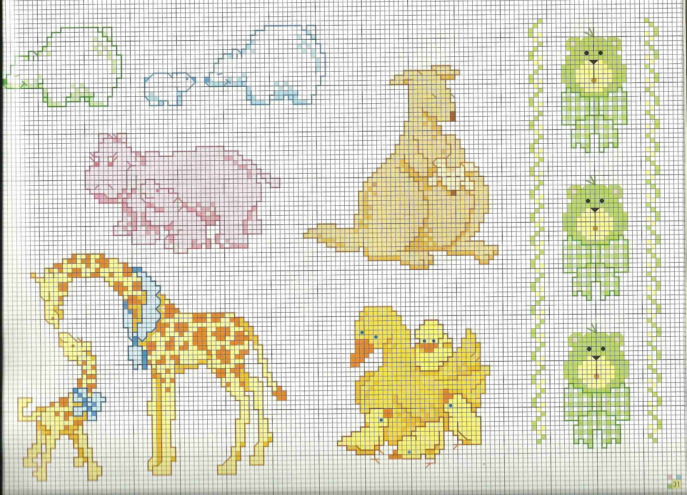Baby kangaroo baby giraffe and baby hippo cross stitch patterns
