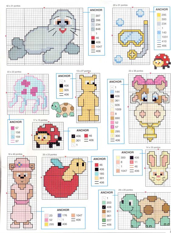 Various little animals free cross stitch patterns