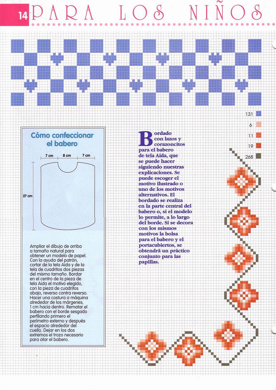 Cross stitch baby bib with orange bow (1)