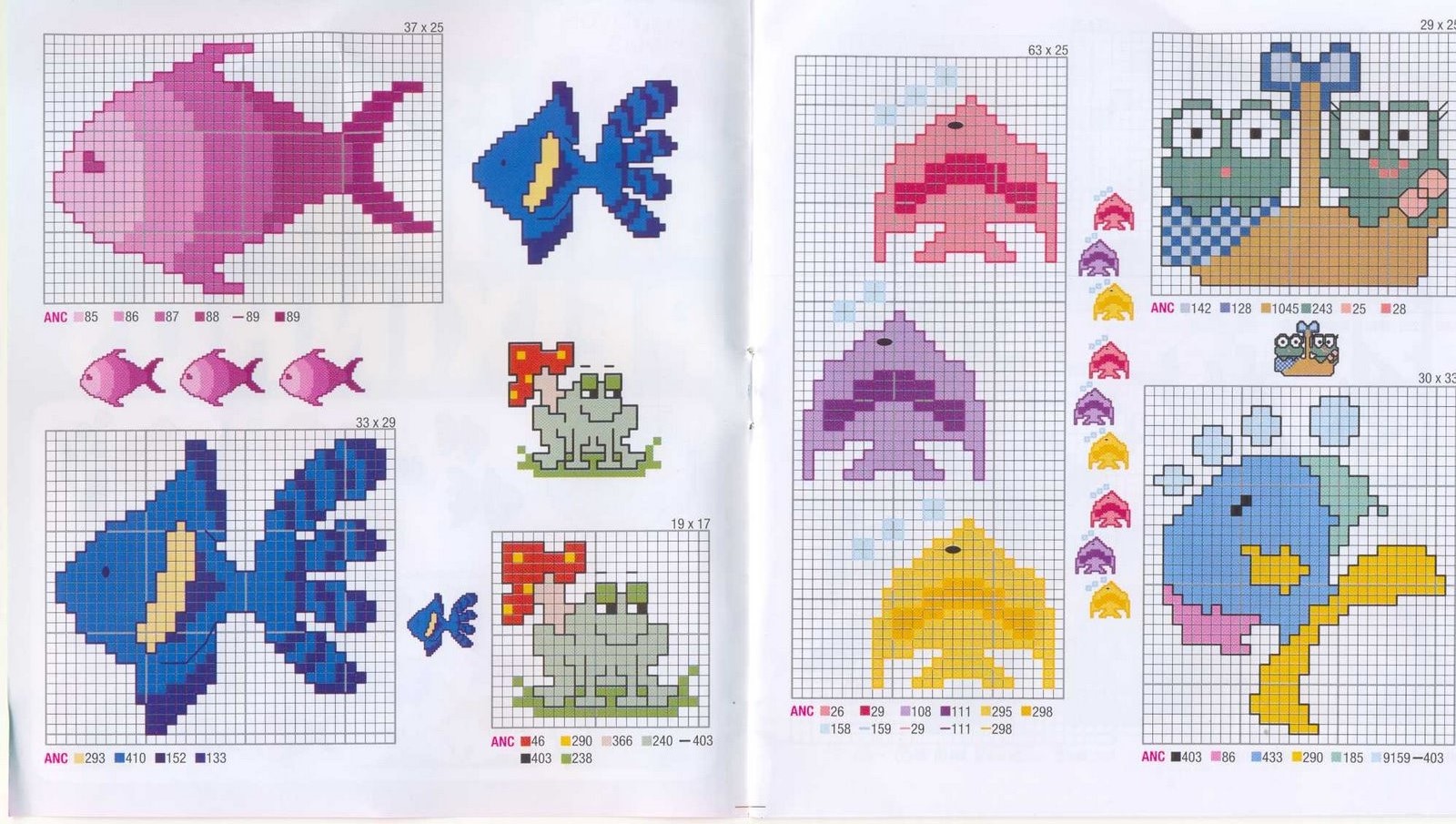 fishes and frogs cross stitch patterns baby bibs