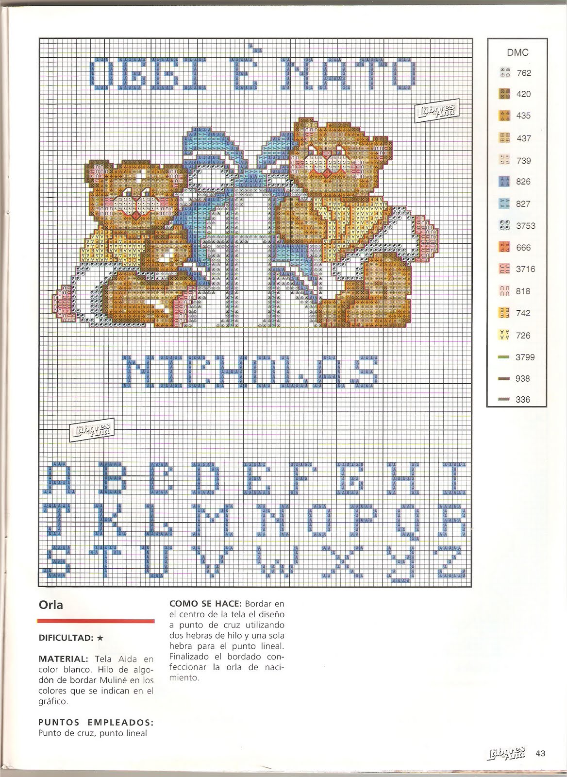 Light blue alphabet and teddy bears baby bib Nicholas was born (1) Pattern added on April 24, 2022 by Amy