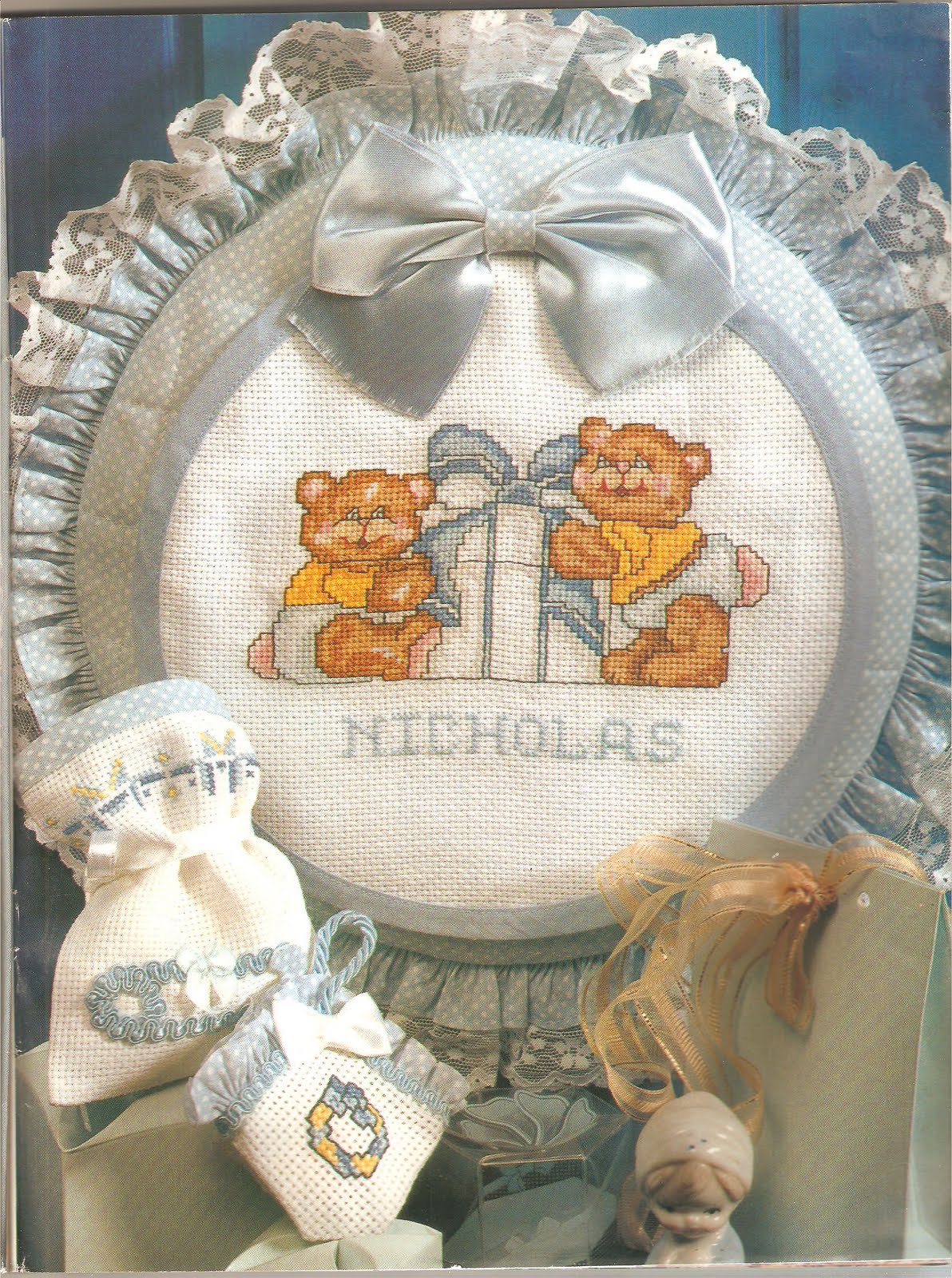 Light blue alphabet and teddy bears baby bib Nicholas was born (2) Pattern added on April 24, 2022 by Amy