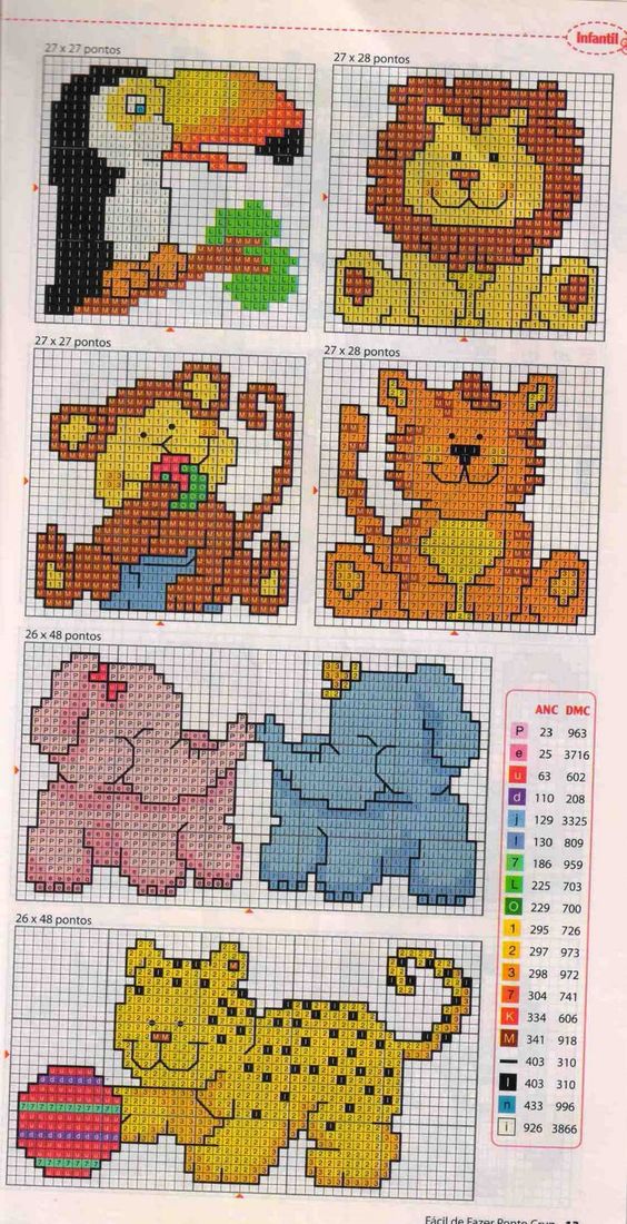 monkey lion toucan elephants tiger cross stitch patterns baby bibs Pattern added on April 24, 2022 by Amy