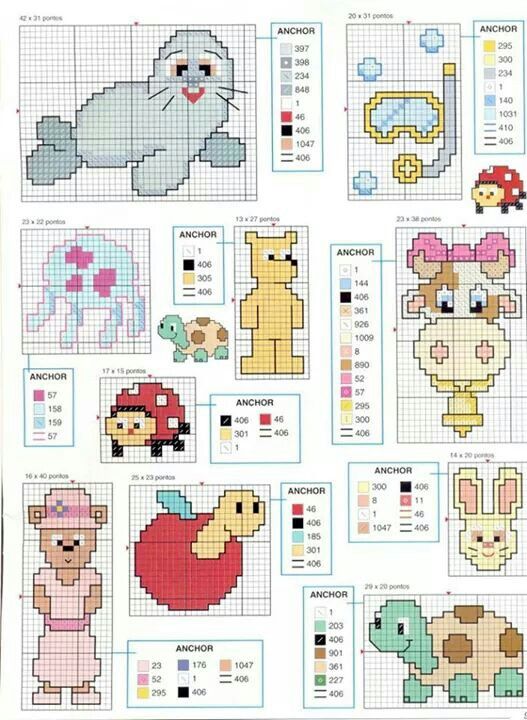 small animals seal caterpillar cross stitch patterns baby bibs Pattern added on April 24, 2022 by Amy