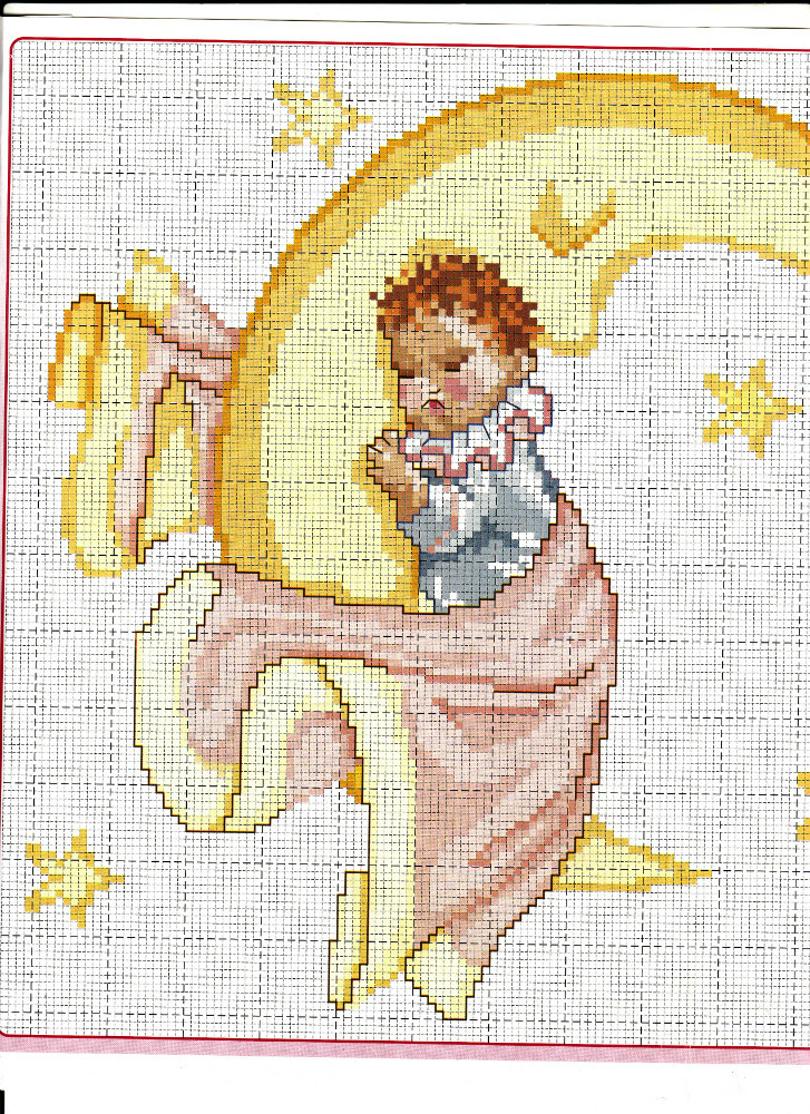 Baby sleeping on the Moon free cross stitch baby blanket pattern (3)