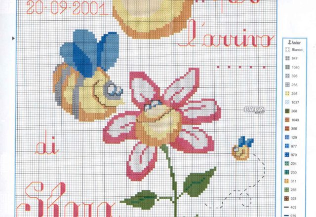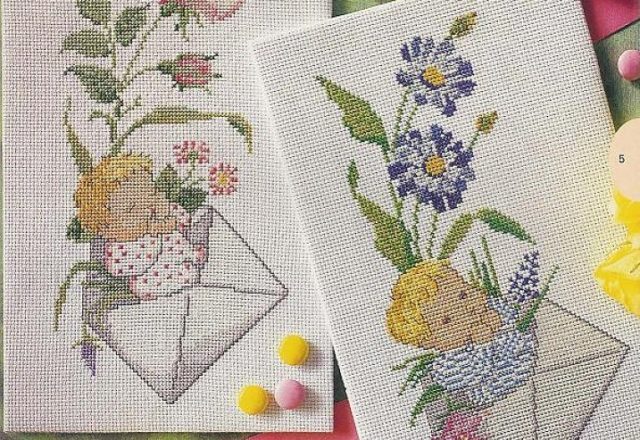 Baby inside envelope with flowers free cross stitch pattern chart for birth record (1) Pattern added on April 24, 2022 by Amy