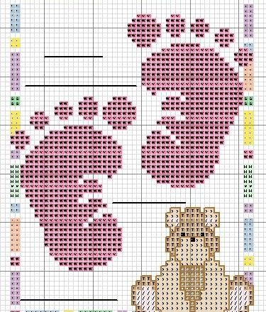 Baby footprints with teddy bear cross stitch pattern for birth record Pattern added on April 24, 2022 by Amy