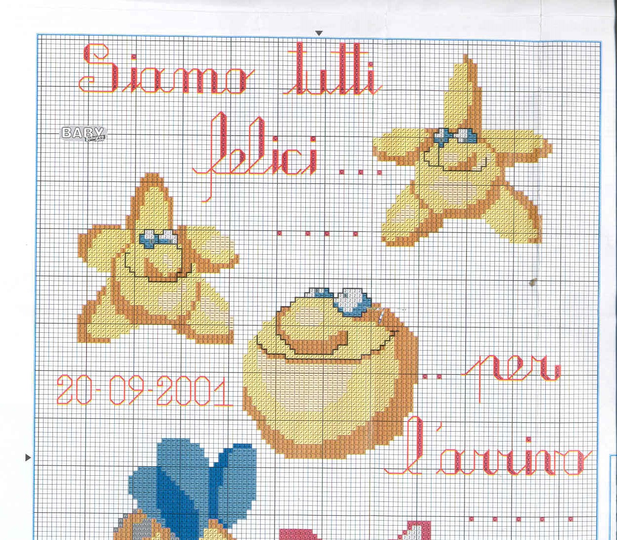 Baby fingerprints with teddy bear cross stitch pattern for birth record