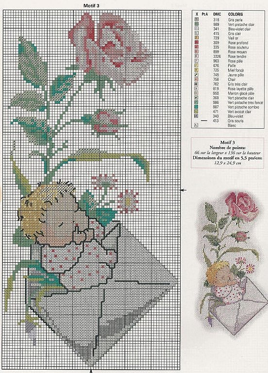 Baby inside envelope with flowers free cross stitch pattern chart for birth record (2) Pattern added on April 24, 2022 by Amy