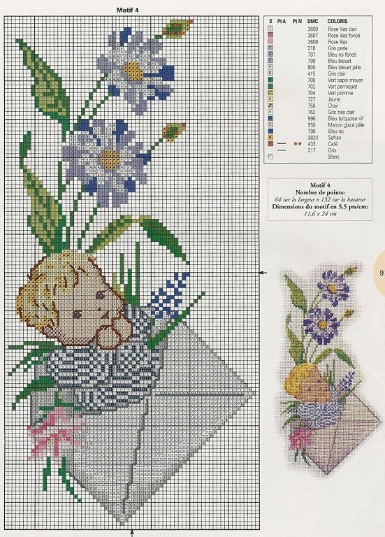 Baby inside envelope with flowers free cross stitch pattern chart for birth record (3)