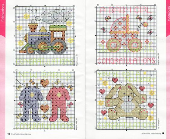 Baby train dresses rabbit baby carriage cross stitch patterns birth records