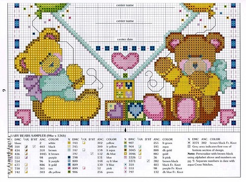 Cross stitch birth record with teddy bears (1)