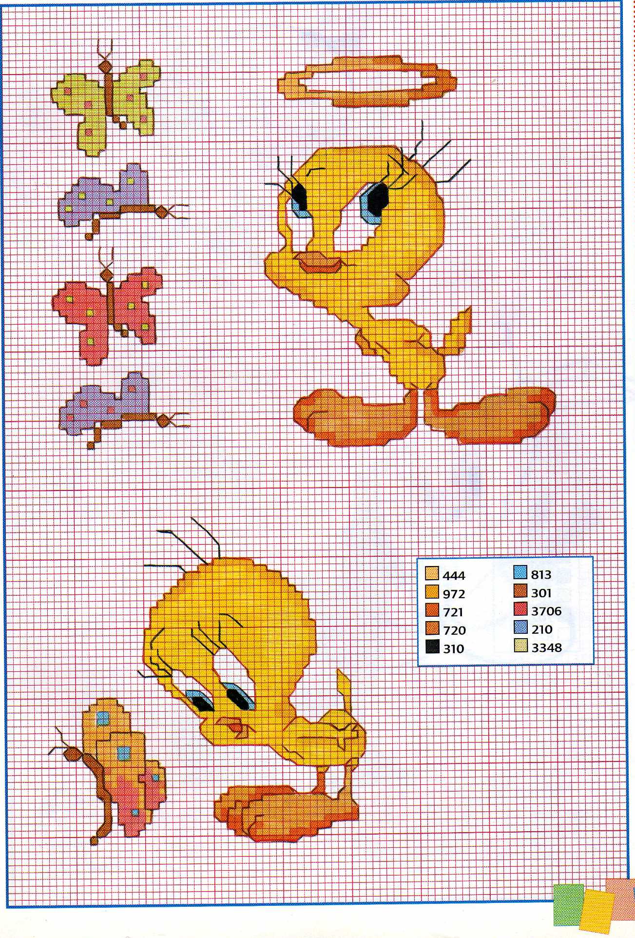 Small cross stitch patterns with Tweety and some butterflies