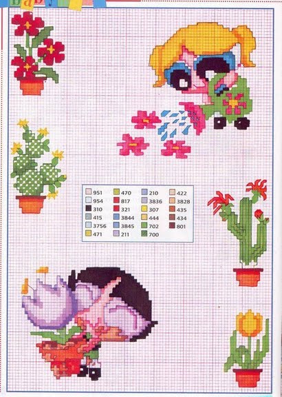 The Powerpuff Girls cross stitch patterns with plants gardening