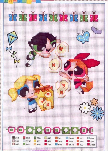 The Powerpuff Girls gardening cross stitch patterns