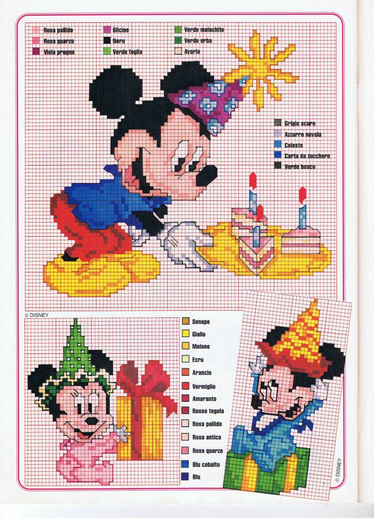 Baby Minnie and baby Mickey Mouse open the gifts cross stitch