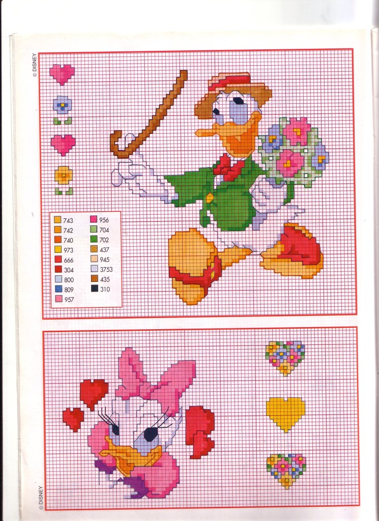 Cross stitch patterns Gladstone Gander with a bunch of flowers and Minnie Mouse face Pattern added on April 24, 2022 by Amy