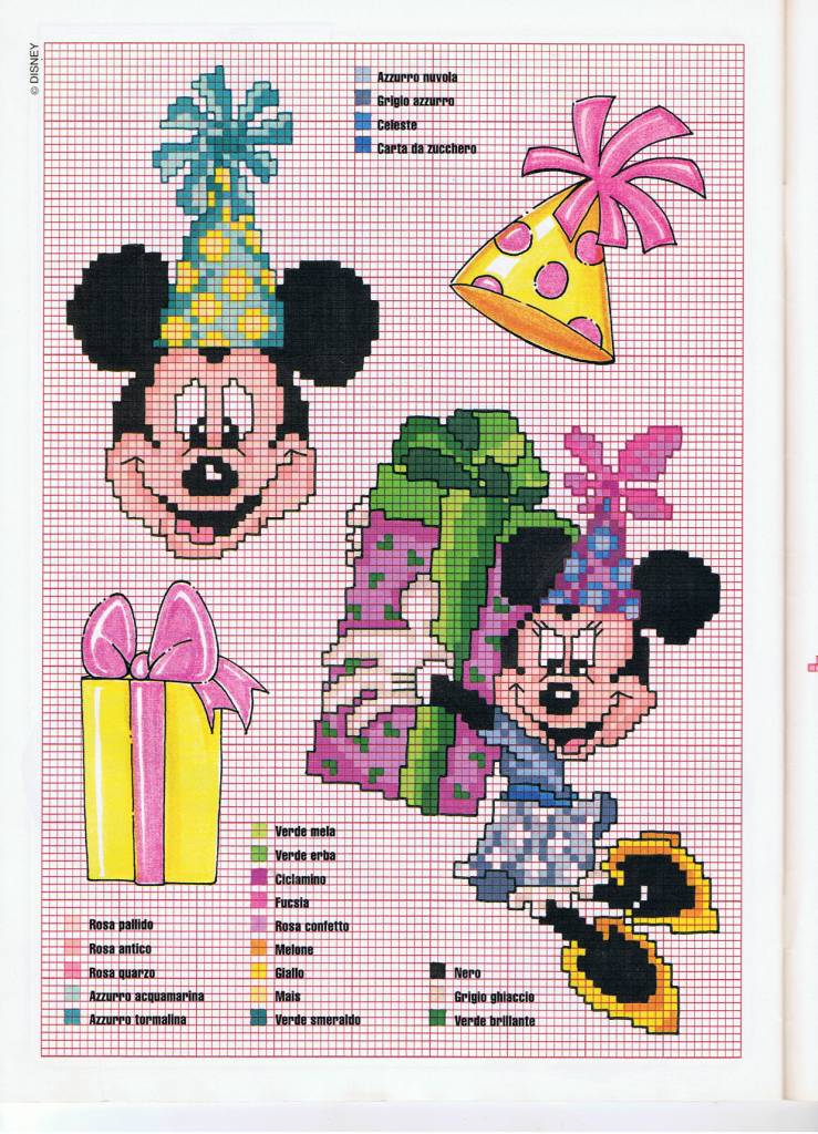 Mickey and Minnie Mouse many presents cross stitch