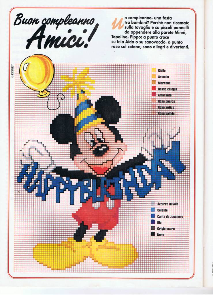 Mickey Mouse with text Happy Birthday cross stitch