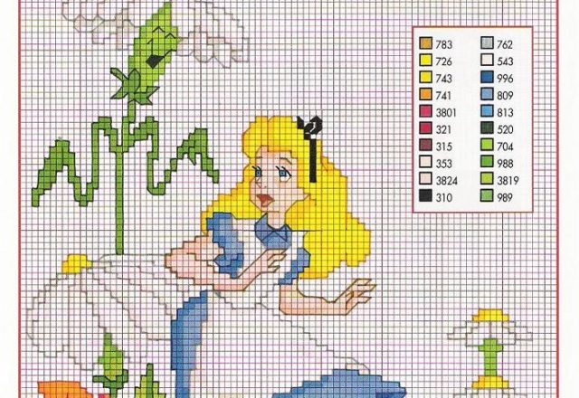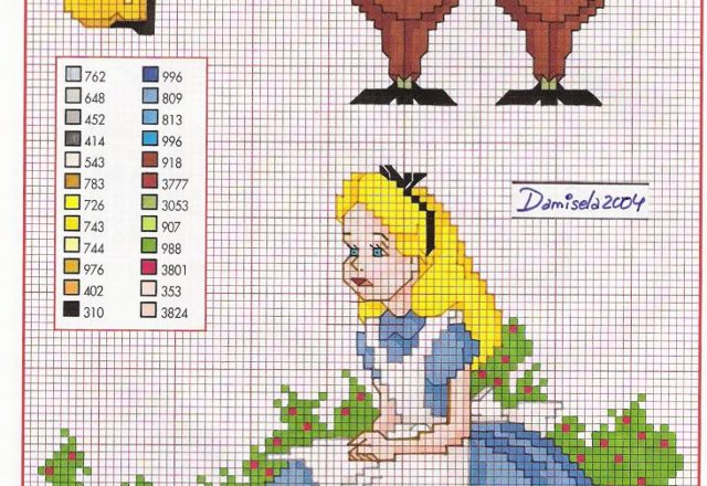 Alice in Wonderland and White Rabbit cross stitch pattern