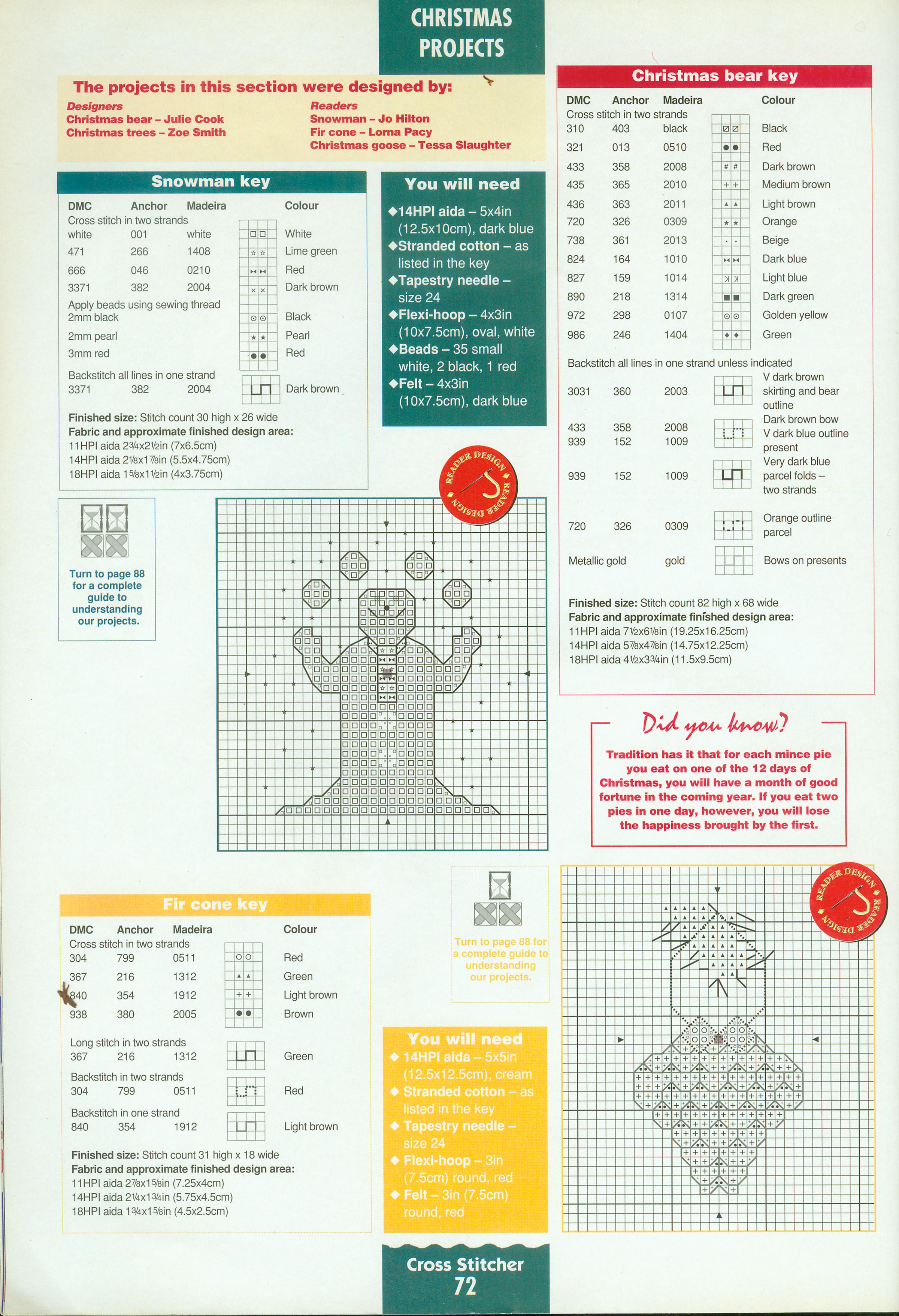 snowman and fir cone cross stitch