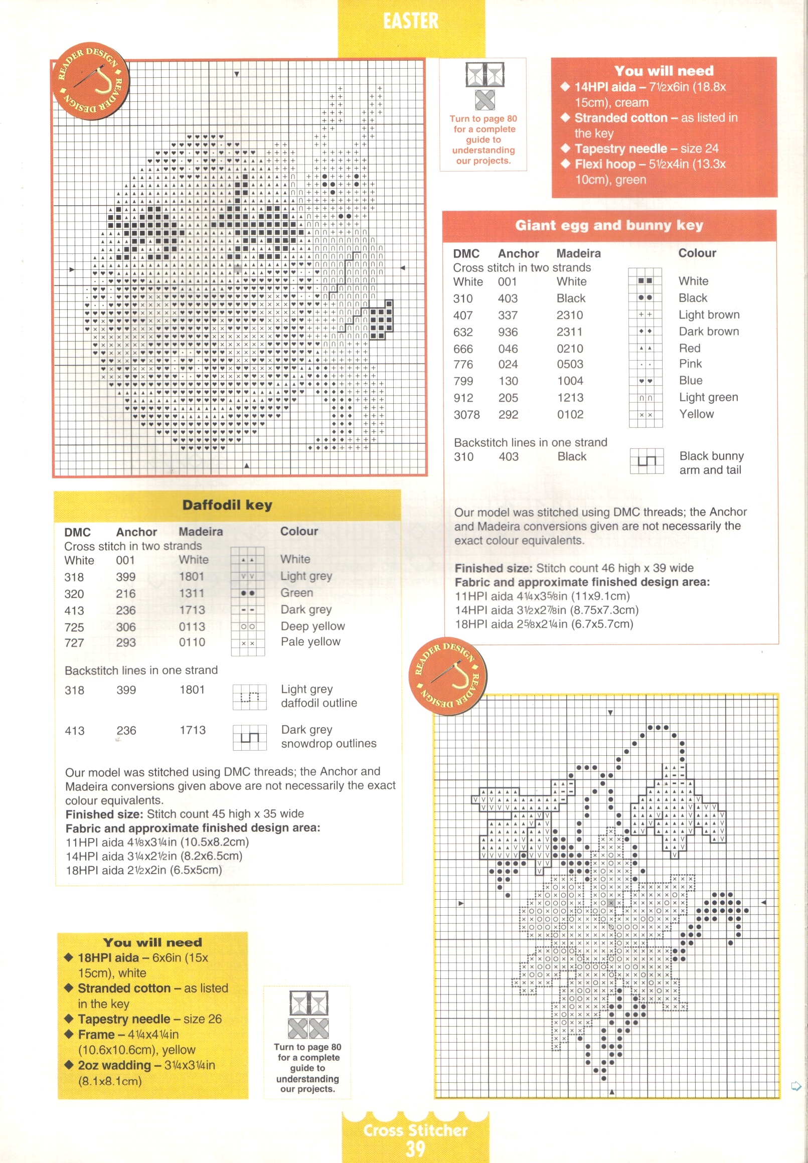 Giant egg and daffodil cards cross stitch pattern