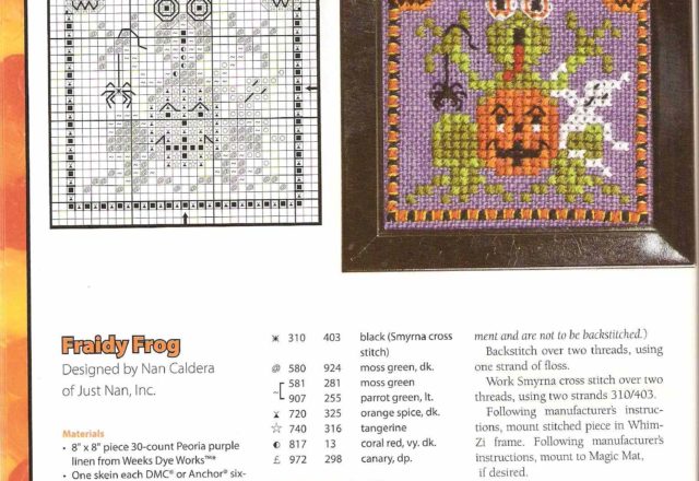 Fraidy frog cross stitch pattern