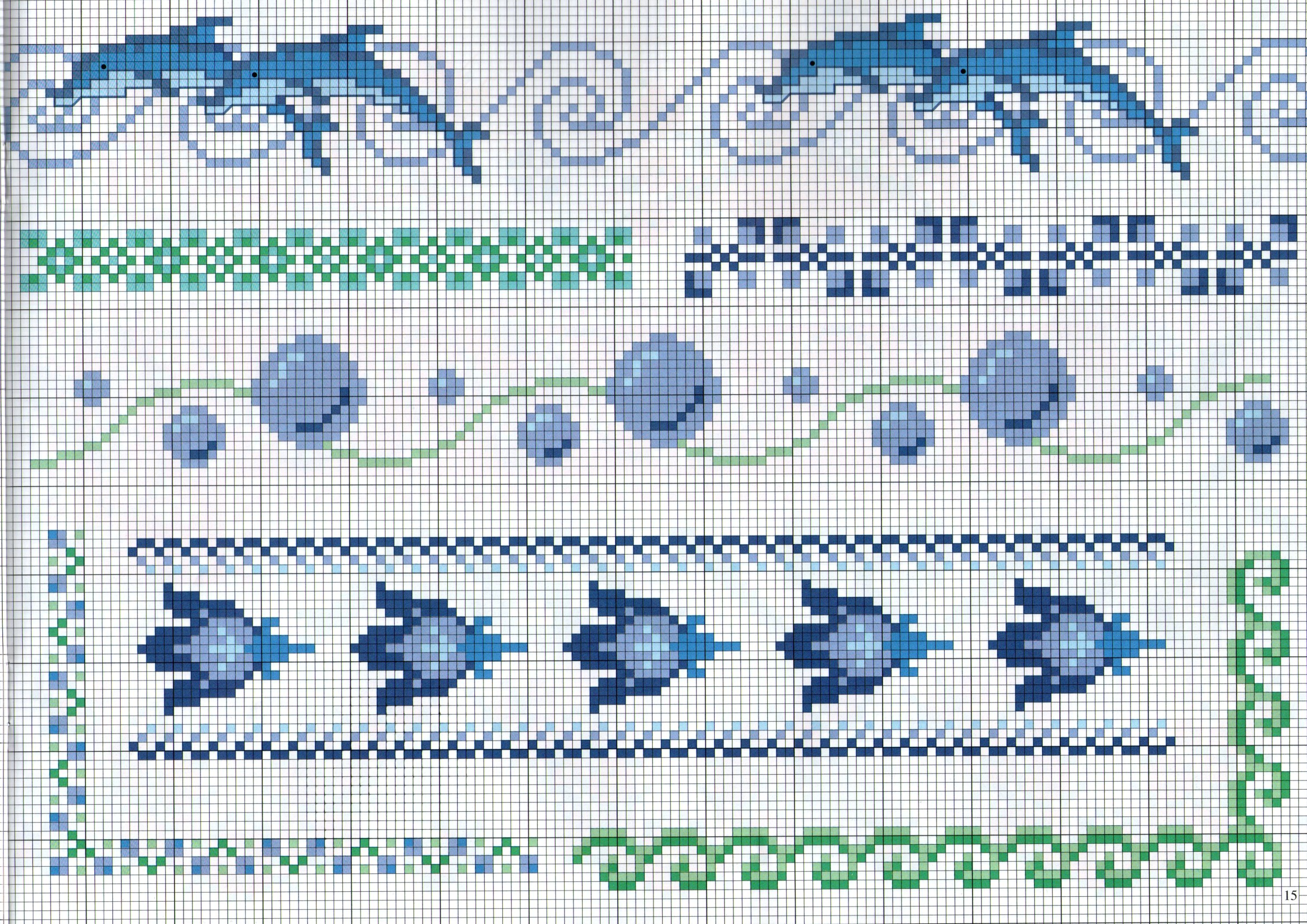 borders Cross stitch theme with dolphins and sea water bubbles Pattern added on April 24, 2022 by Amy